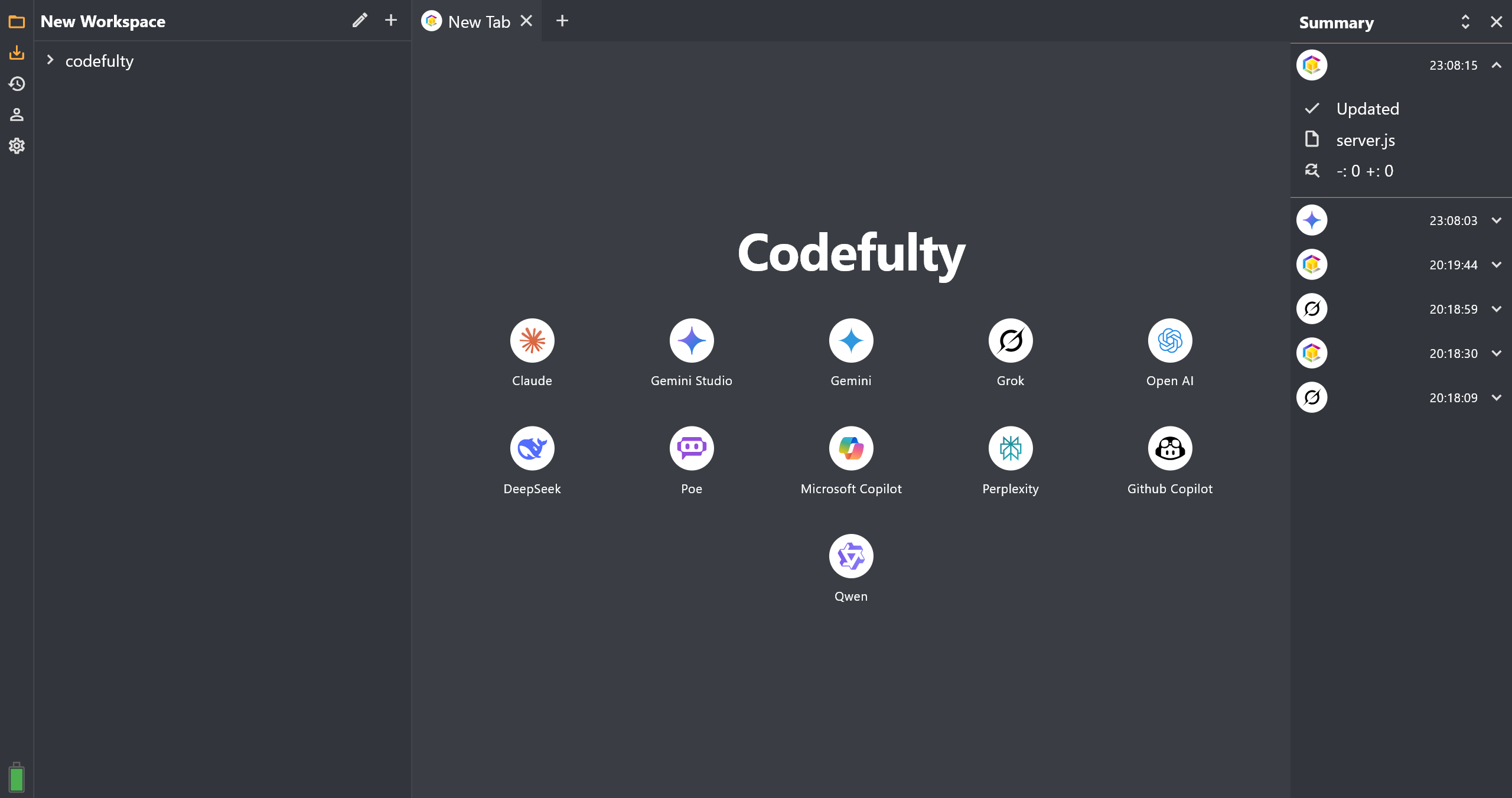 Unlock the next generation of AI coding. See how Codefulty empowers developers to manage files, generate code, and work with multiple AI models — all within one seamless workspace.