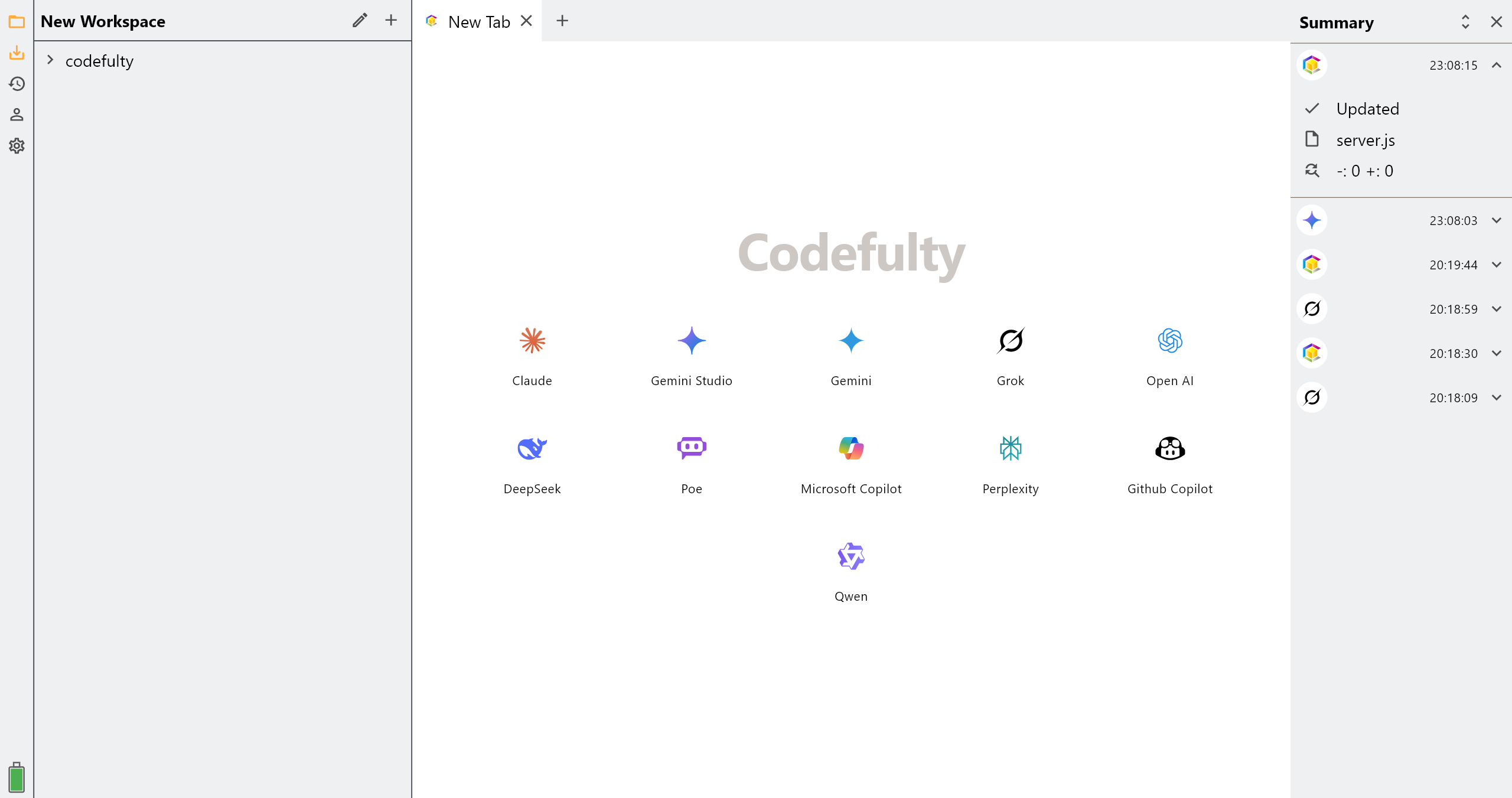 Most AI coding tools live inside IDEs and hide your code in the cloud. Codefulty is built differently — it connects directly to your local files, gives you control over every change, and lets you use any AI model you choose.